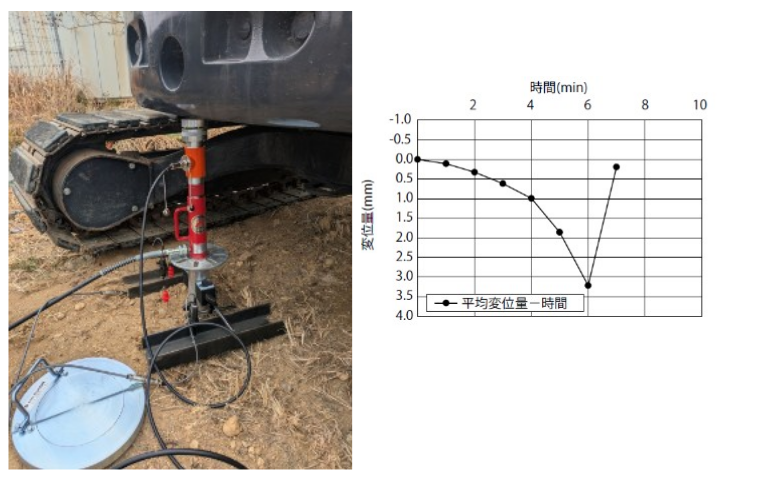 - 変位計で沈下量(変位)をミリ単位で測定