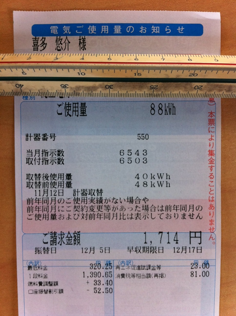 15分程度ですが、無駄な電気は使用しないように心がけてます。